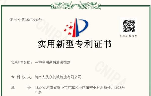 河南人從眾機械制造有限公司多用途稀油激振器專利技術(shù)