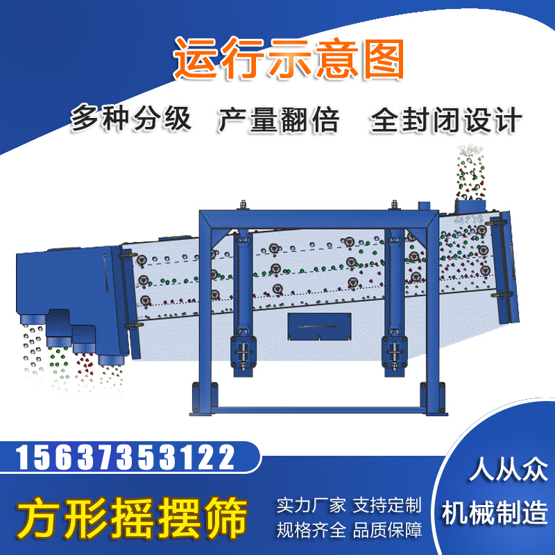 方形搖擺篩系列篩分機是為滿足物料較高的篩分需求而開發設計的高效篩分設備,其產量大,精度高廣泛應用于化工、礦山、飼料、食品、冶金等行業。