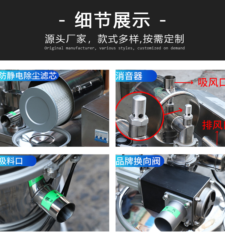 真空輸送機又叫真空上料機,由于其管道密封的輸送方式,可以消除粉塵對環境的污染;由于采用管道輸送,占用空間小,不受長距離和短距離的限制,是大多數粉末材料的首選。