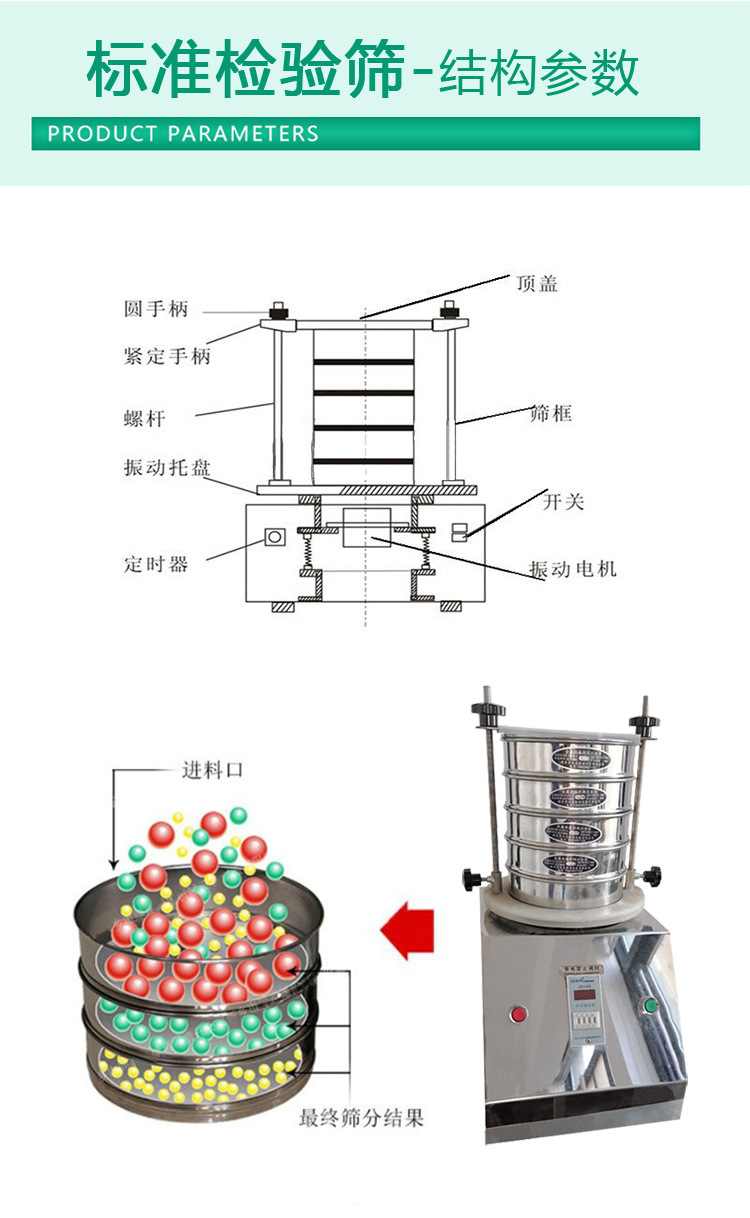標準檢驗篩是一種實驗室篩選機,也稱樣品篩和分析篩,主要用于大學實驗室、科研機構或一些公司的實驗室。它不同于一般的振動篩,篩機和篩網有一定的標準限制。